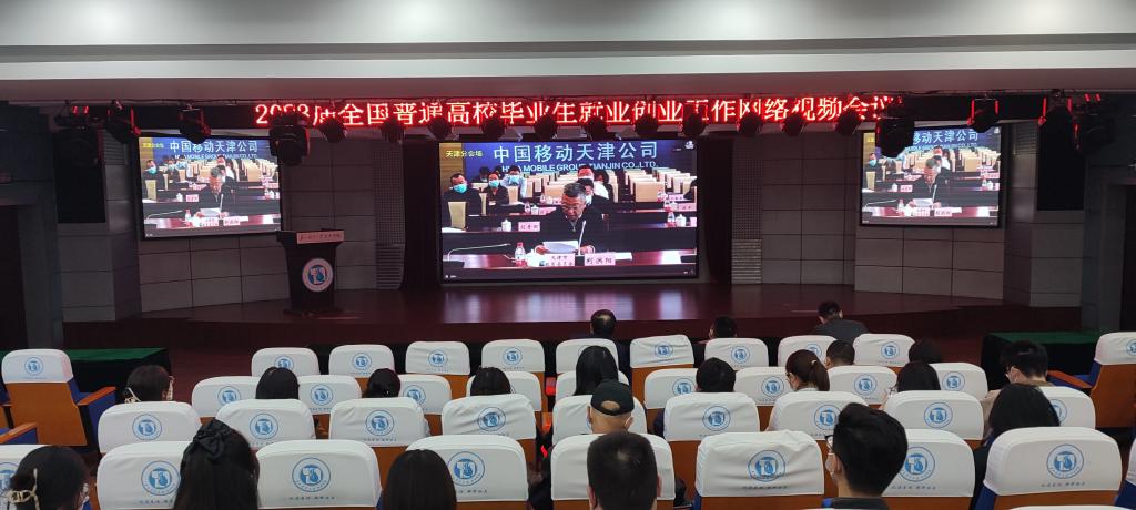 360环球在线注册党委书记郑群,党委副书记、副院长孙景,各相关部门负责人,各二级学院院长、学工办主任、全体毕业班辅导员及就业指导服务中心全体工作人员在学院图书馆报告厅集体收听收看了本次视频会议。