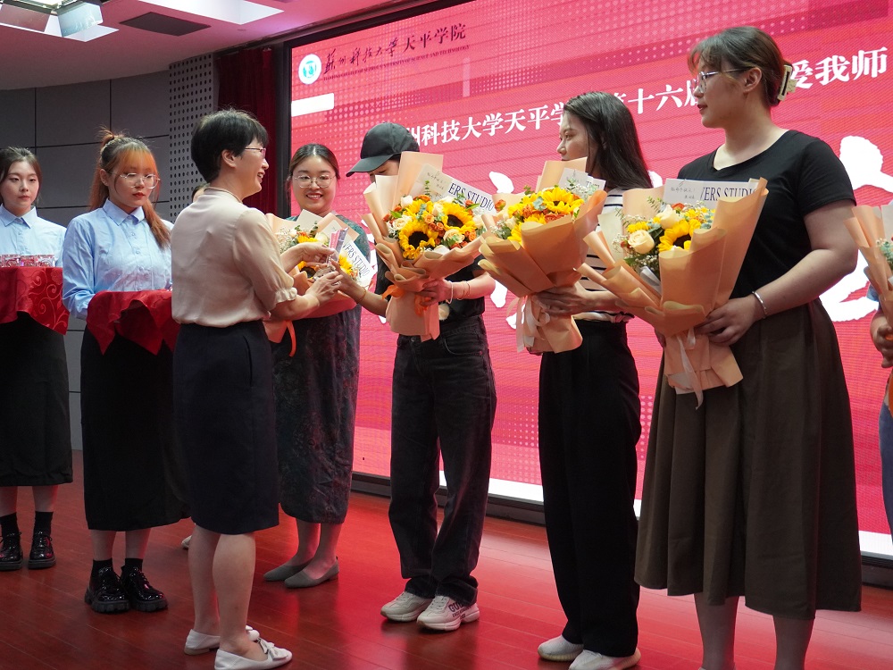 会上,王院长为李蕾等获评教师颁发了奖杯,学生代表为老师们献上鲜花,表达感激之情,送上节日问候。教师代表李星燃老师在发言中表示,作为教师,深感使命光荣,责任重大,会把过去的荣誉作为新的工作契机,以更高的标准严格要求自己,以身作则、为人师表。