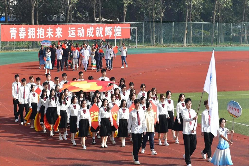开幕式上,天平学子将五千年文明与华夏血脉相映生辉,翩翩起舞的飘带与熊熊燃烧的火炬相映成趣。点燃火炬,点燃梦想,传递温暖,传递希望。他们以昂扬的精神面貌、嘹亮的口号、整齐的步伐展现青春活力,以实际行动亮出践行青春使命的决心。