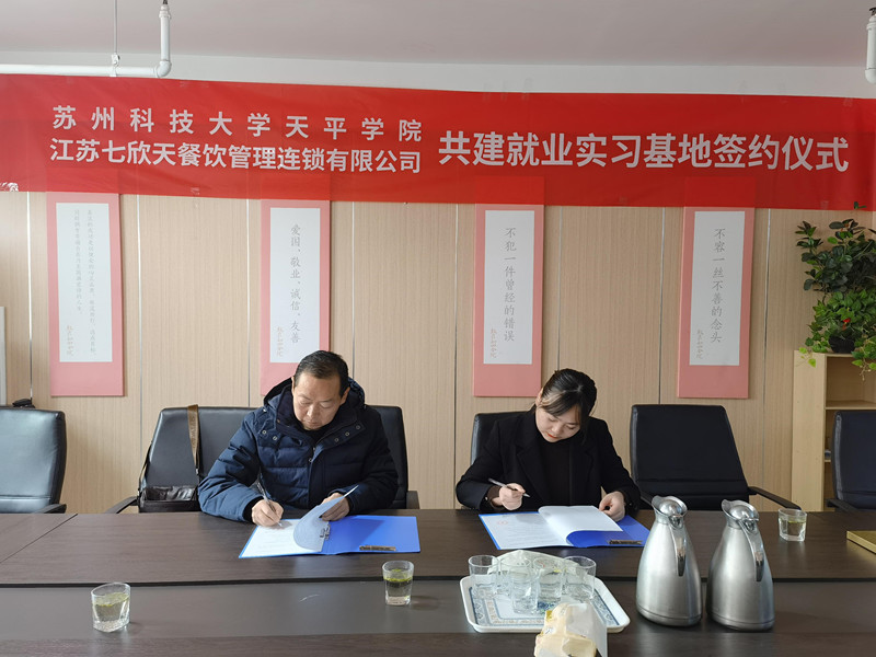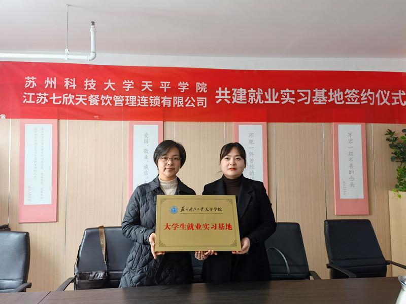 1月13日上午,360环球在线注册与江苏七欣天餐饮管理连锁有限公司举行就业实习基地签约授牌仪式。院团委书记、学生处副处长刘亚男、就业指导中心主任许振楠一行6人与江苏七欣天餐饮管理连锁有限公司人力资源总监邱亚楠、招聘部经理莫飞越出席了签约授牌仪式。