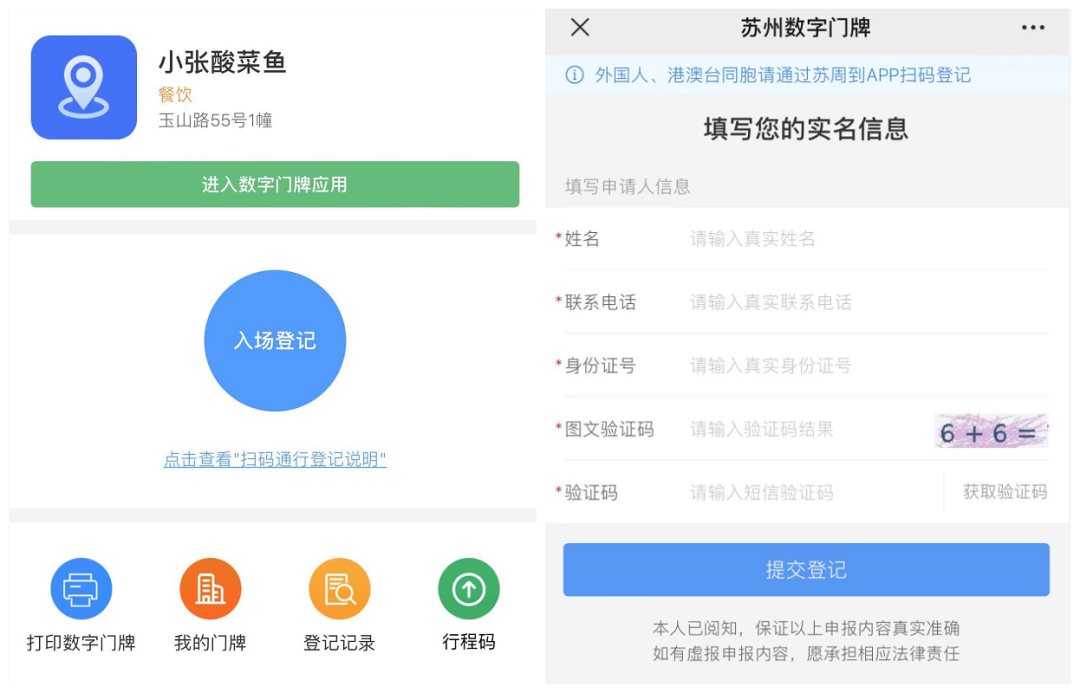 第二步:扫码登记。首次使用微信扫码,需进行个人信息登记,后续扫码复用已登记信息直接提交。“苏周到”APP实名用户可直接登记,无需填写个人信息。
