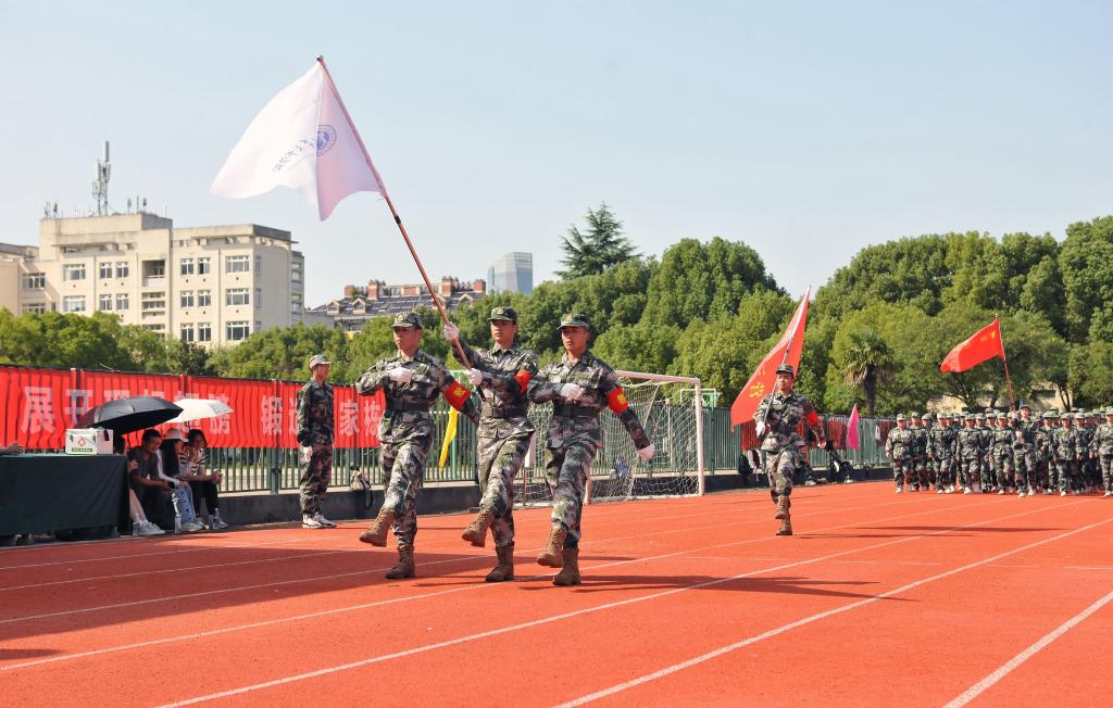 军训成果汇报在庄严的国歌声中拉开序幕。本次共有11个方阵参加军训成果汇报,全体新生迈着坚定的步伐、喊着嘹亮的口号、透着坚毅的目光,彰显着青春与活力。