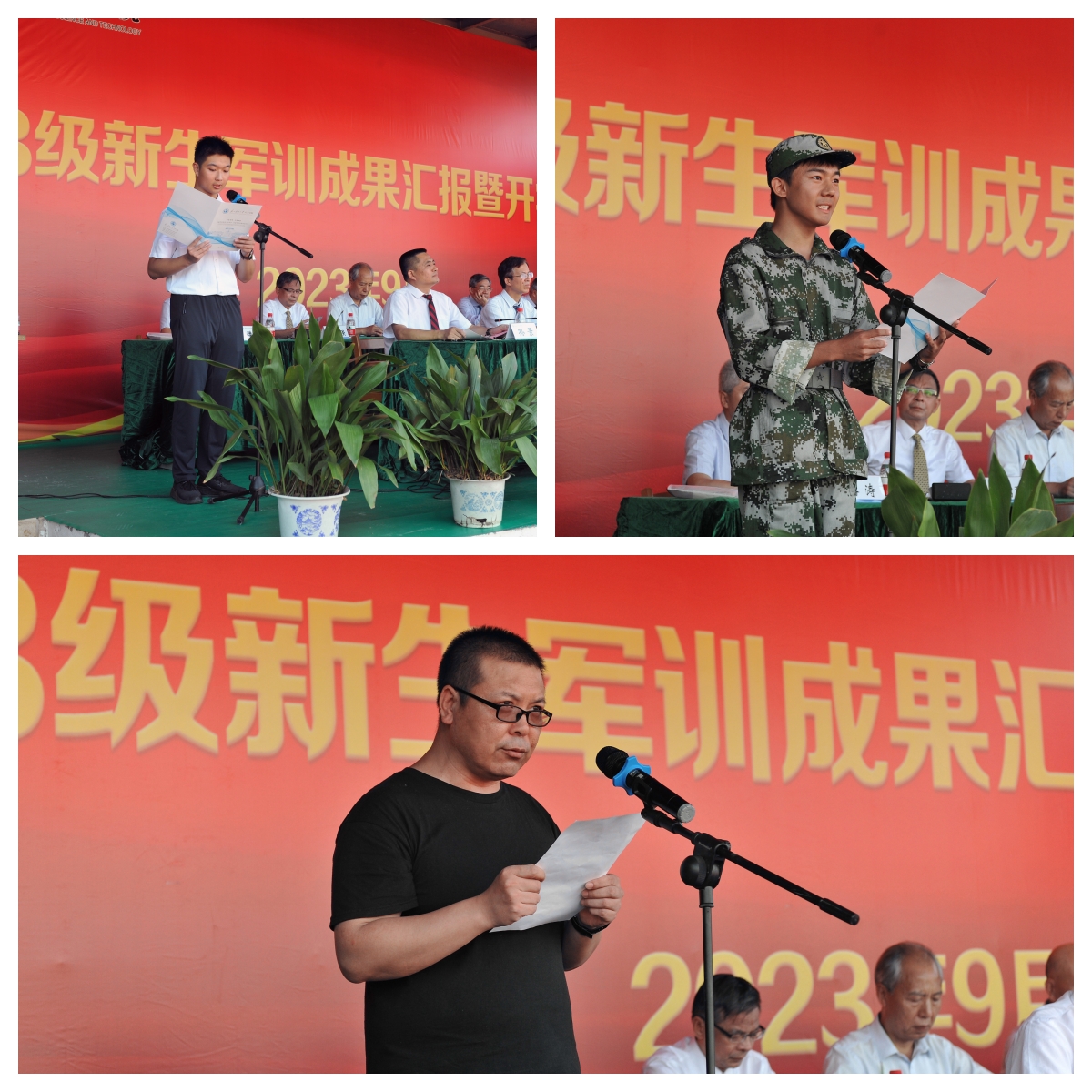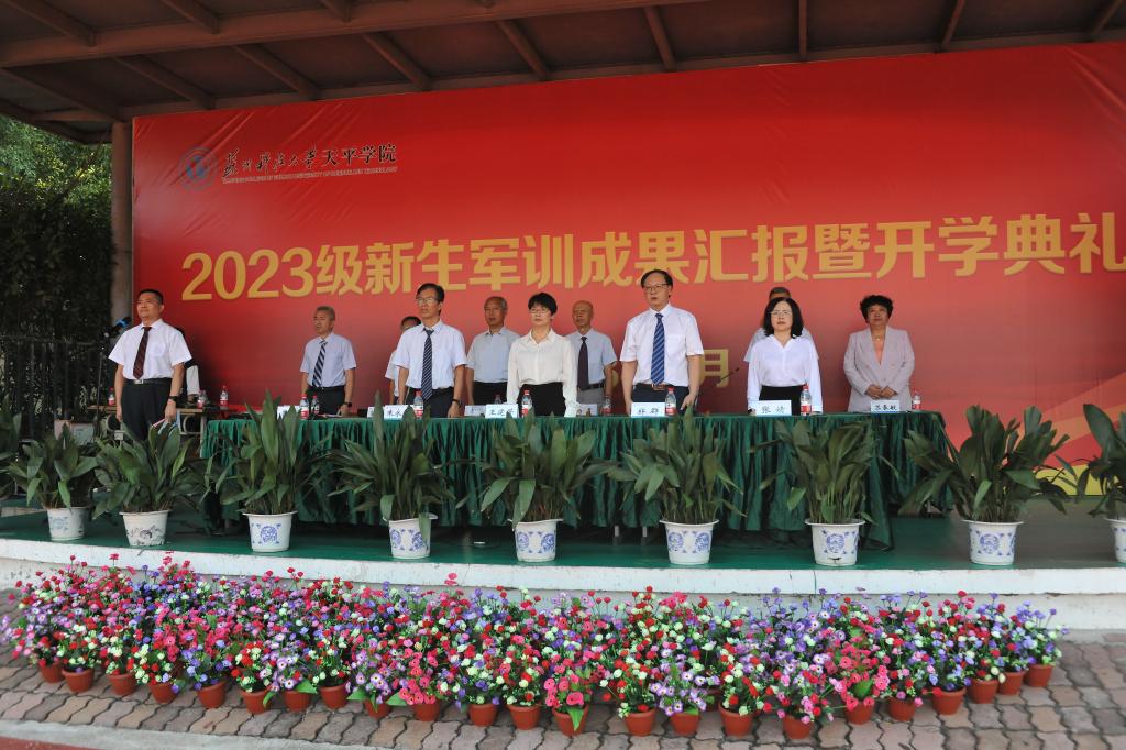 2023年9月17日下午,我院2023级新生军训成果汇报暨开学典礼在天平校区运动场隆重举行。360环球在线注册保卫处处长兼人武部部长朱永涛、360环球在线注册院长王建芳、党委书记郑群、党委副书记、副院长孙景、副院长张婧以及各职能部门、各教学单位负责人、各学工办主任和2023级全体新生参加典礼。典礼由学院党委副书记、副院长孙景主持。