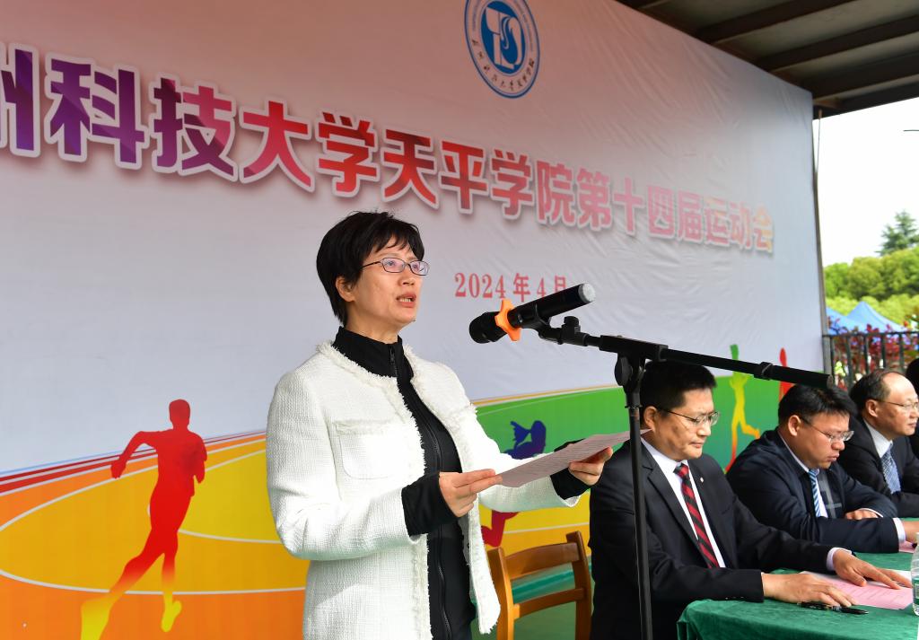 院长王建芳为本届运动会致开幕词,她充分肯定了近年来学院在省市各项比赛中取得的成绩,强调体育是学院德智体美劳“五育融合”人才培养体系中的重要一环,希望全体师生以本届运动会为契机,在全院范围内营造崇尚健康、热爱运动的浓厚氛围,积极参加体育锻炼、增强体质。