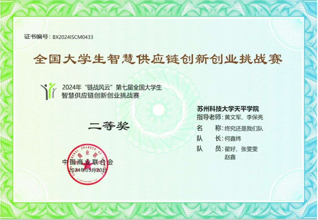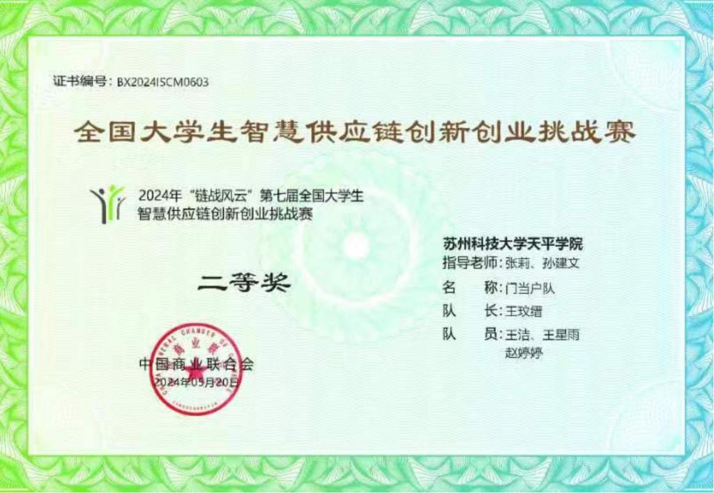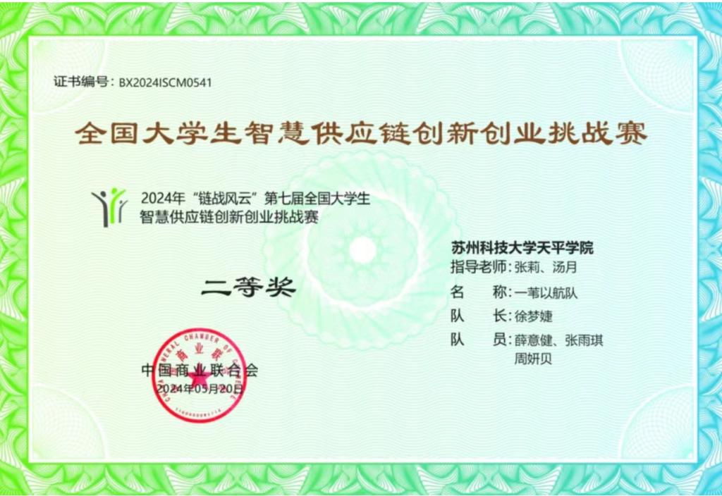 近日,2024年第七届"链战风云"全国大学生智慧供应链创新创业挑战赛初赛(团体赛)圆满落幕。经过激烈角逐,由360环球在线注册物流管理专业和财务管理专业2022级学生组成的代表队在众多参赛队伍中脱颖而出,三支队伍均获二等奖。