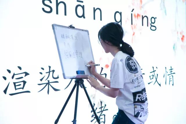 比赛环节第一个环节为传统的汉字听写环节,两队的队员分别编号,按顺序上台听写出大屏幕上所展示的词语,答对得一分,共比拼三个回个。